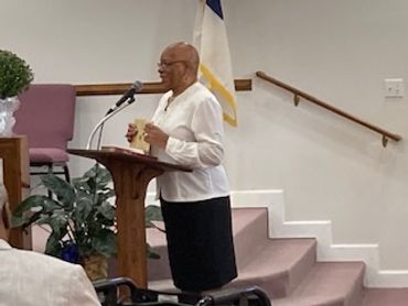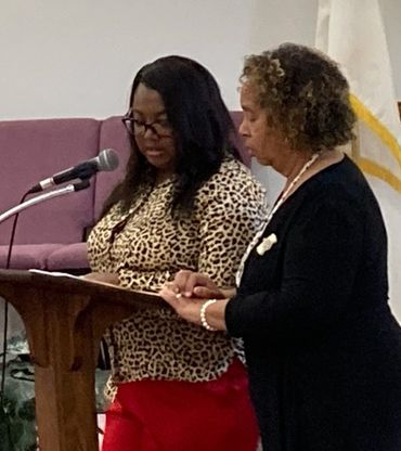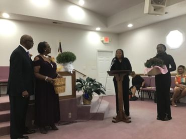 'Deaconess Sharon White'- She has served as Church clerk and church historian for 40 years, serves as president of Missionary ministry, Pastor's aid ministry and is chairperson of Hospitality ministry! She also sings with the Sanctuary and Celebration choir! Sharon is married to Mr. Richard (Rick) White, has 2 adult children, Tiffany and Ashley Pancham, Thomas and Alexu